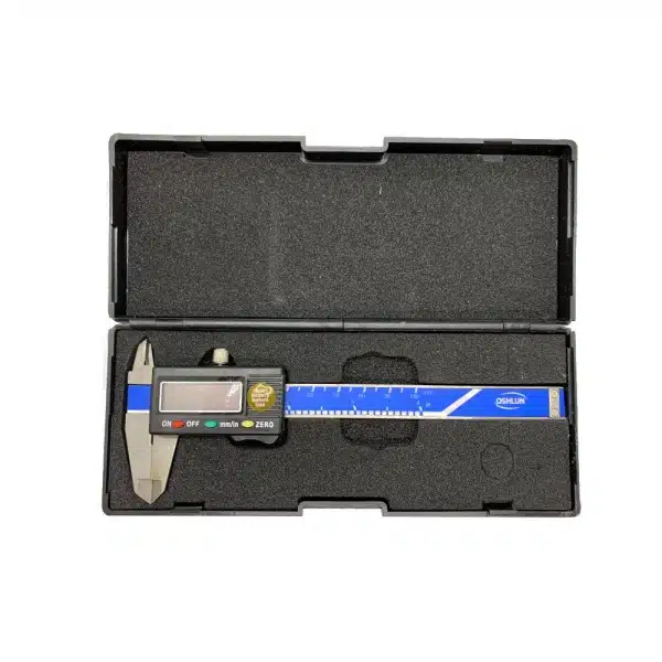 4″ electronic digital caliper featuring a large LCD display.